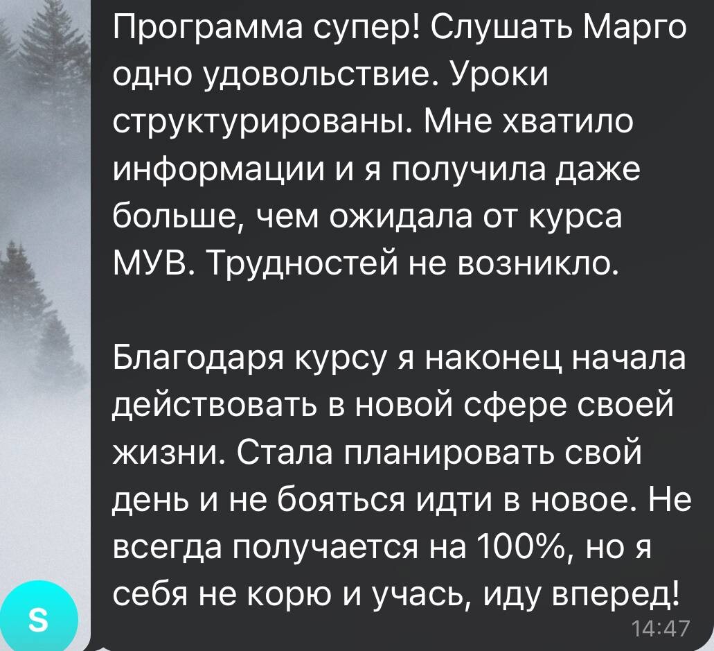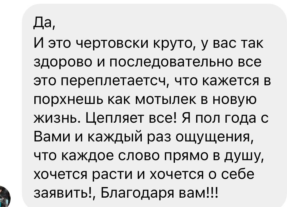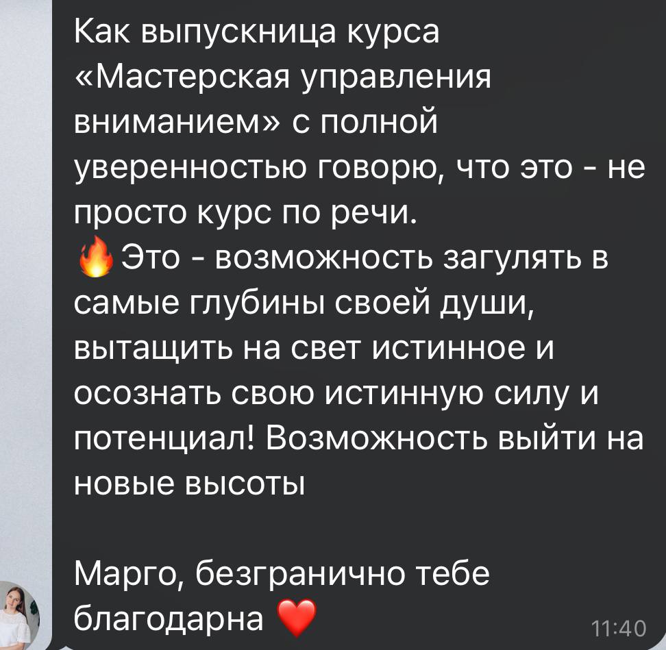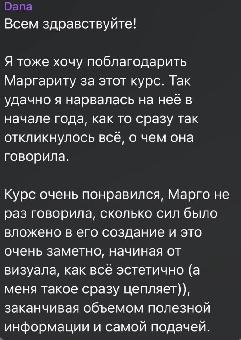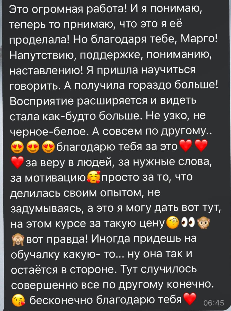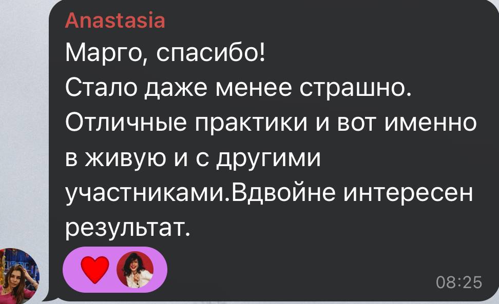 Единственный вариант, кроме наставничества, где можно поработать 1на1 с Маргаритой. Вас буквально проведут за руку к собственным достижениям.
