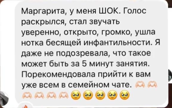 6 комплексов упражнений на голос и речь в формате «включай-повторяй», где Маргарита вместе с вами выполняет каждое упражнение и проговаривает, что и как нужно сделать